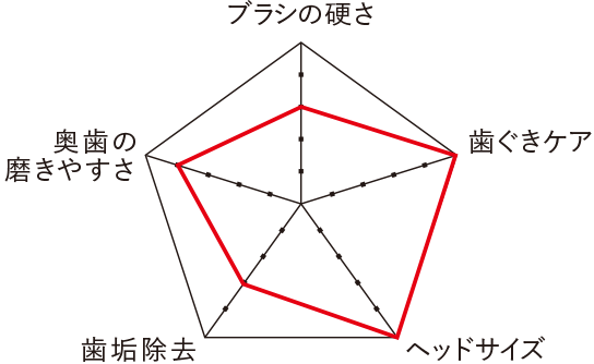 やわらかなブラシと大きめのヘッドのモデルです。ソフトな感触ですが、しっかりと磨くことができます。歯ぐきの敏感な方、知覚過敏の方にもおすすめです。